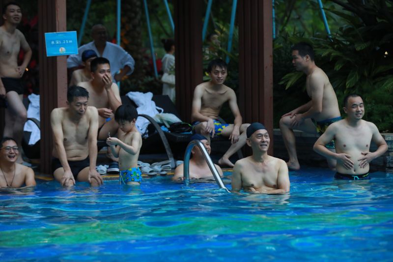 游泳健將們在曬腹肌